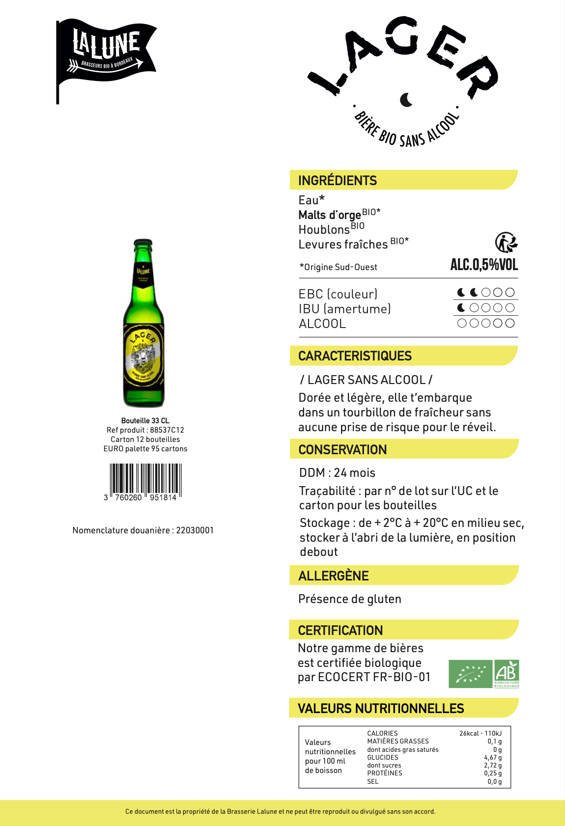 Si tu veux garder la tête claire tout en lâchant prise, si tu rêves de te satelliser autour de LALUNE, ou si tu préfères danser jusqu’au bout de la nuit sans bafouiller tes punchlines, alors notre Lager Bio Sans Alcool est ta nouvelle alliée.