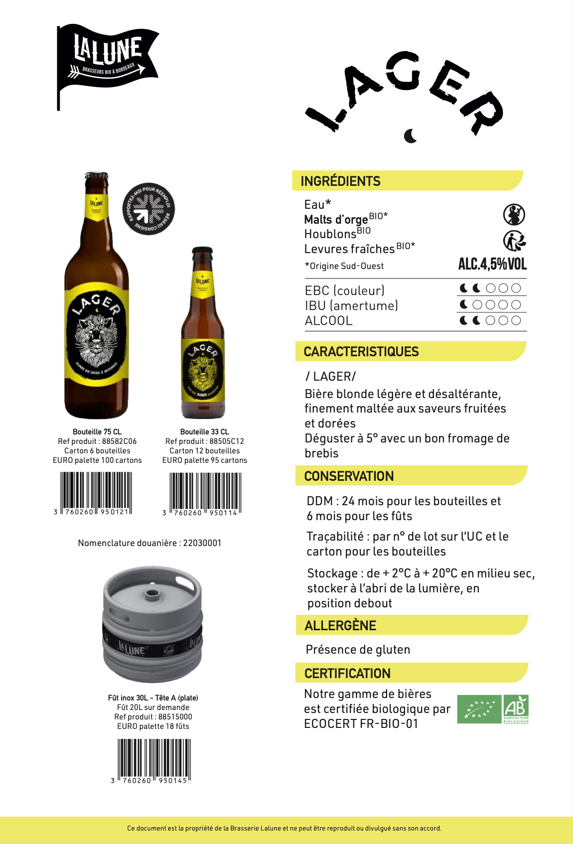 Si tu aimes nager au milieu des silures, pagayer à contre-courant sur la Garonne ou glander sur la plage en attendant le rayon vert qui ne viendra jamais, alors notre Lager est faite pour toi. Fruitées et dorées, ses notes feront dérouler en toi un tourbillon de saveurs capable de faire renaitre tes instincts les plus sauvages.